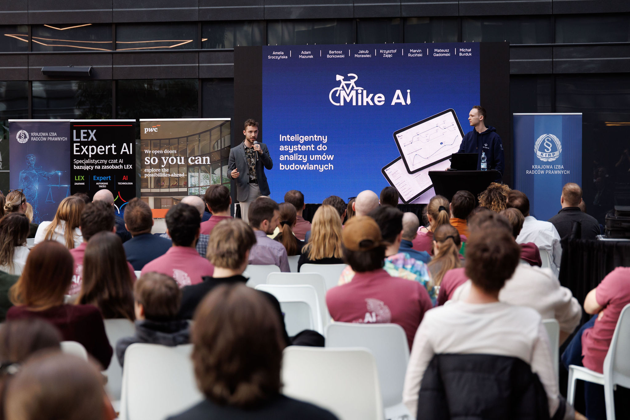 Warto wspomnieć o projektach, które podejmowały wyzwania z zakresu teorii prawa, administracji oraz compliance. Uczestnicy pochylili się nad bardzo aktualnym zagadnieniem odpowiedzialności agentów sztucznej inteligencji – ten temat z pewnością będzie do radców prawnych coraz częściej wracał. Inni zaproponowali usprawnienie procesów administracyjnych w szkolnictwie wyższym w ramach inicjatywy potencjalnie ograniczającej liczbę zadań wykonywanych ręcznie przez „panie z dziekanatów”. W obszarze windykacji i zarządzania płatnościami pojawiła się platforma, której celem jest budowanie zaufania między stronami oraz redukcja barier płatniczych poprzez zapewnienie pełnej interoperacyjności systemów.